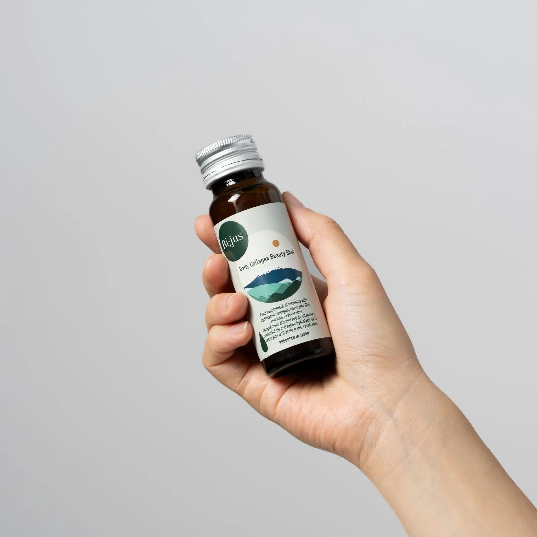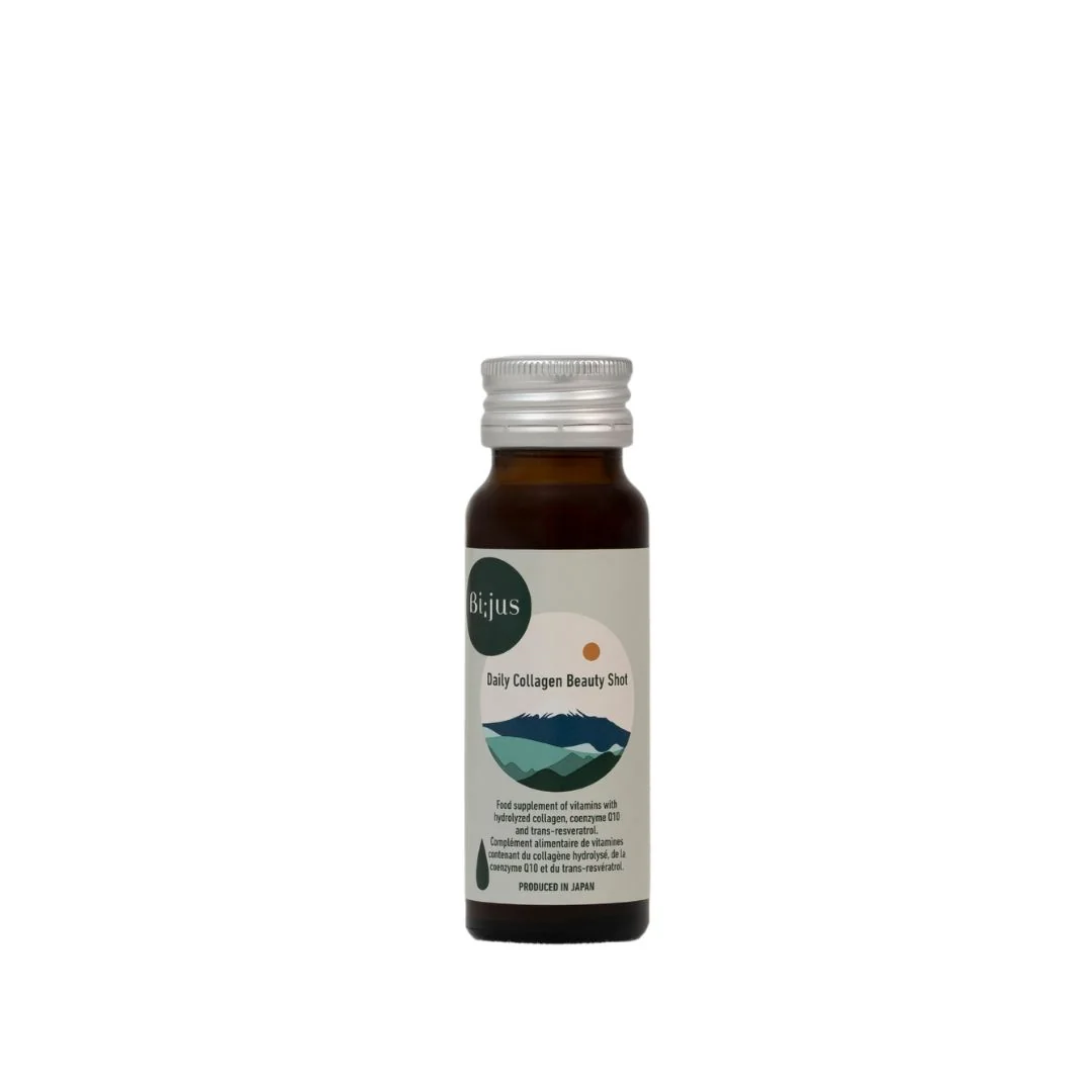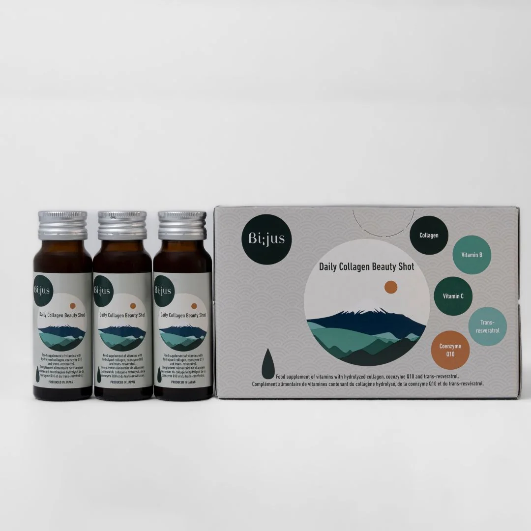 Bi;jus japoniškas kolagenas yra gėrimas, turtingas grožio ingredientų, tokių kaip peptidinis kolagenas, trans-resveratrolis, vitaminai B ir C, kofermentas Q10 ir medus.