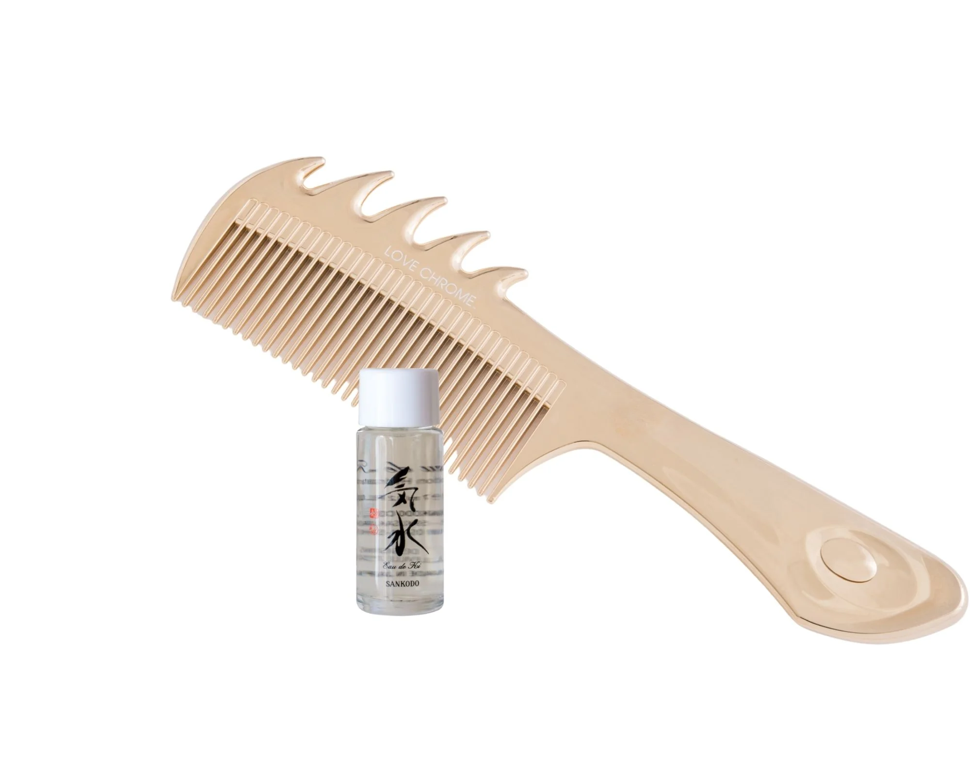 Tai dovana moteriai vertinančiai prabangą. Dovaną sudaro auksinės šukos ir Eau de Ki losjonas, vadinamas grožio ir jaunystės eliksyru.