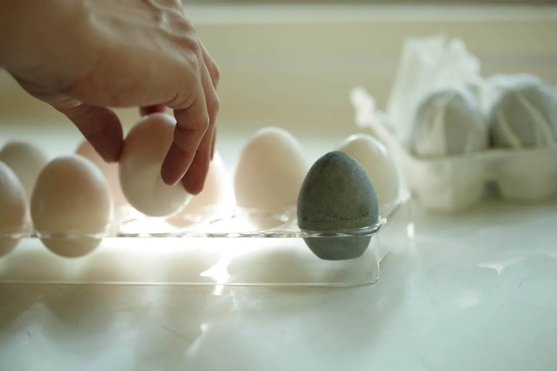 Kiaušinio formos dezodorantas, pagamintas iš diatomito žemės, sumaišytos su anglimi. Idealiai tinka naudoti šaldytuve. Panaikins šaldytuve užsistovėjusius kvapus. Drėgmę kontroliuojantis dezodorantas, pagamintas iš diatomito žemės ir anglies, kurios yra labai higroskopiškos (turinčios gebėjimą absorbcijos būdu iš aplinkos pritraukti vandens molekules) natūralios medžiagos. Kiaušinį rekomenduojama naudoti tokioje vietoje, kur užsilaiko kvapai, pavyzdžiui, šaldytuve.