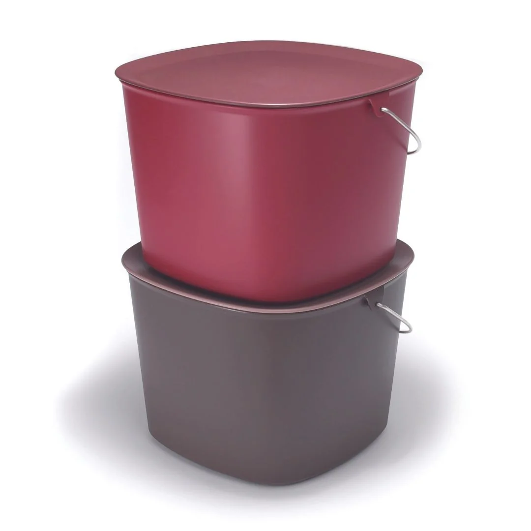 Kibirai susineria vienas į kitą, užimdami mažai vietos, arba naudojant dangčius, susistato vienas ant kito. Tarpusavyje dera visi šios serijos kibirai – baltas, raudonas, rudas ir mėlynas.
