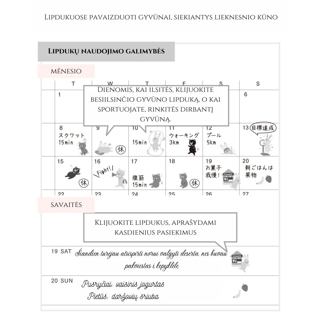 Rekomenduojama lipdukus naudoti ne tik kaip puošmeną, bet ir kaip skatinamąją priemonę reguliariai atlikti mankštas ir rūpintis savo sveikata. Jie puikiai tinka žymėti asmeninius pasiekimus sporto ar sveikatos srityse, taip pat motyvuoja išlaikyti aktyvumą ir sveikatingumą kasdien.