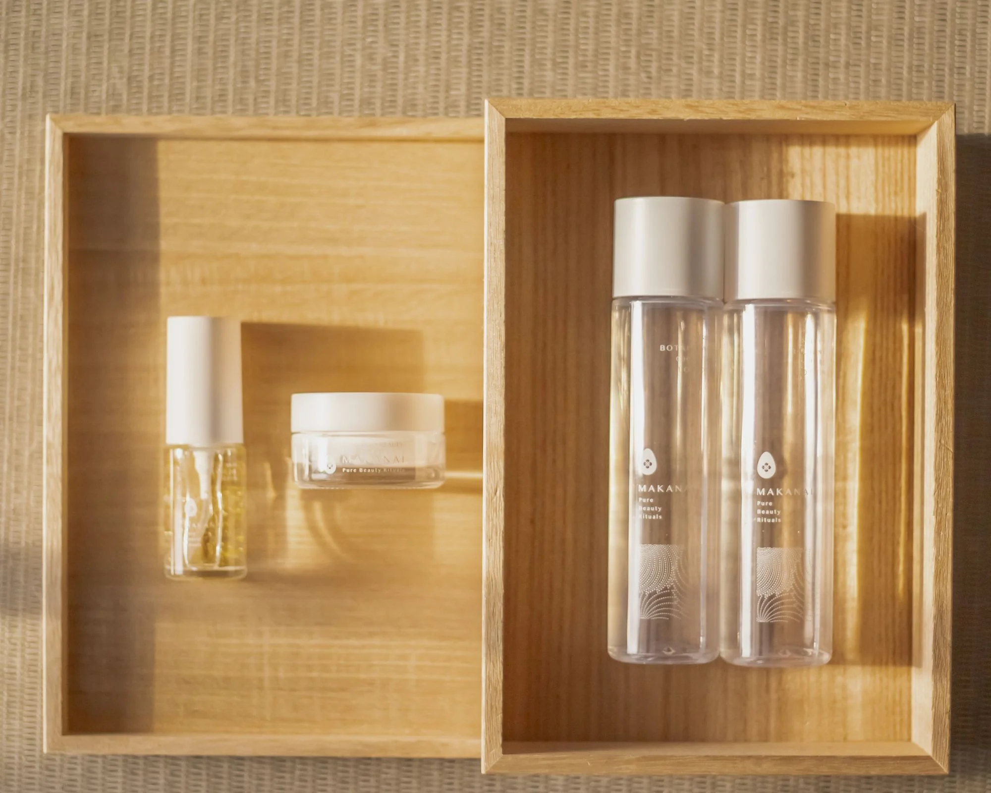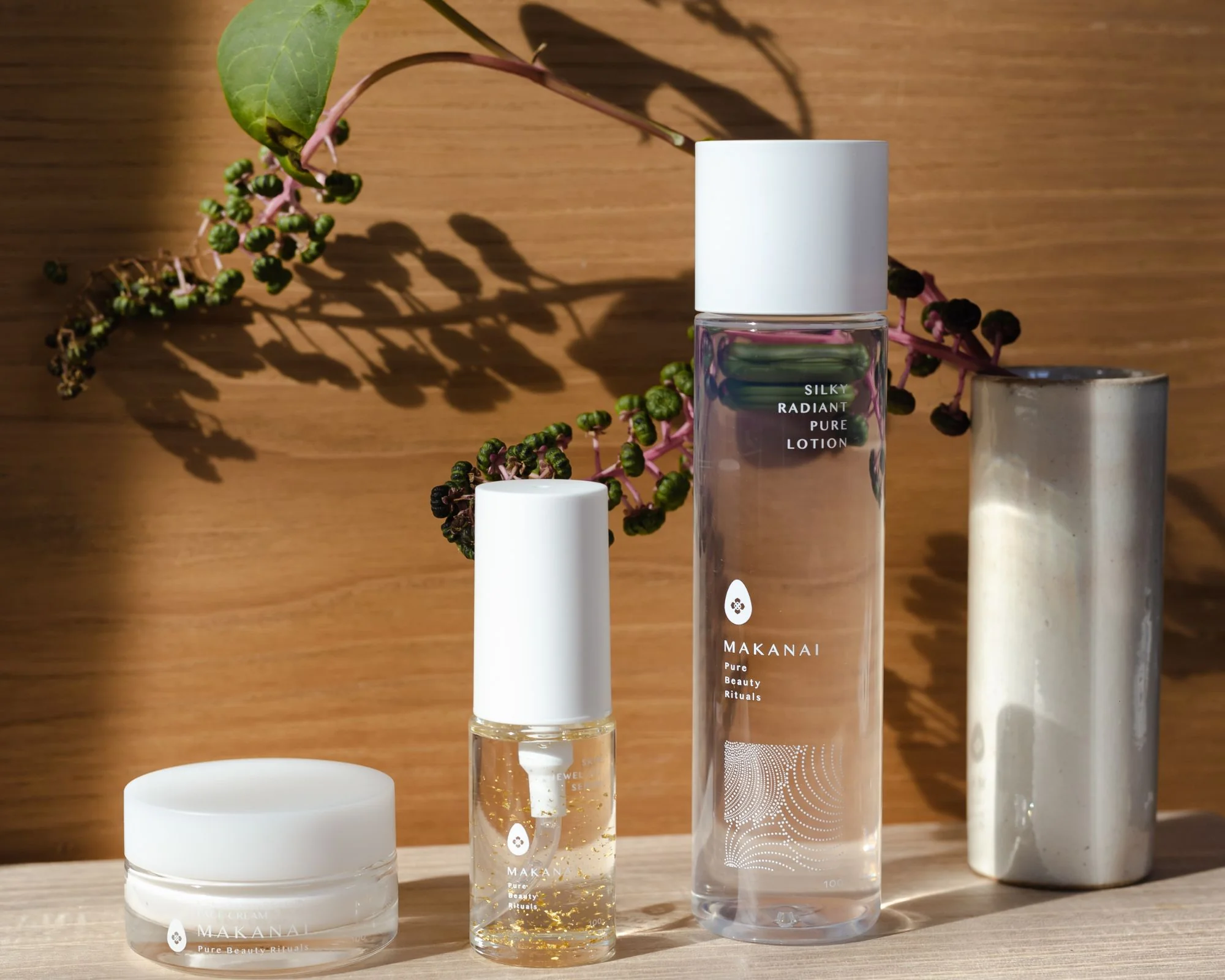 Norėdami sustiprinti drėkinamąjį poveikį, naudokite 24K aukso serumą ir „Kanazawa Beauty“ veido kremą.