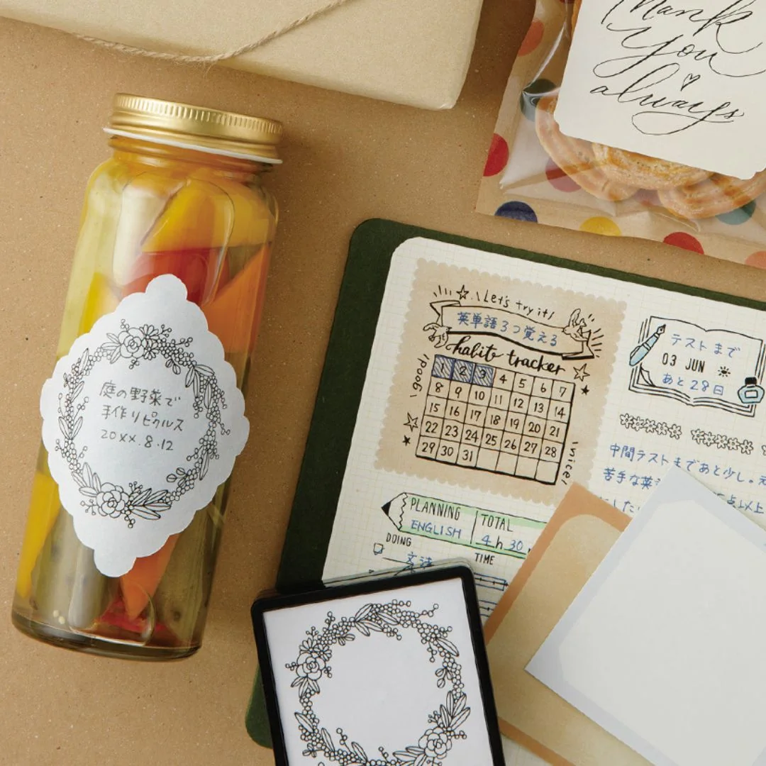 Norėdami lapelius naudoti kaip etiketes ar dovanų korteles, įsigykite antspaudą vainiką.
