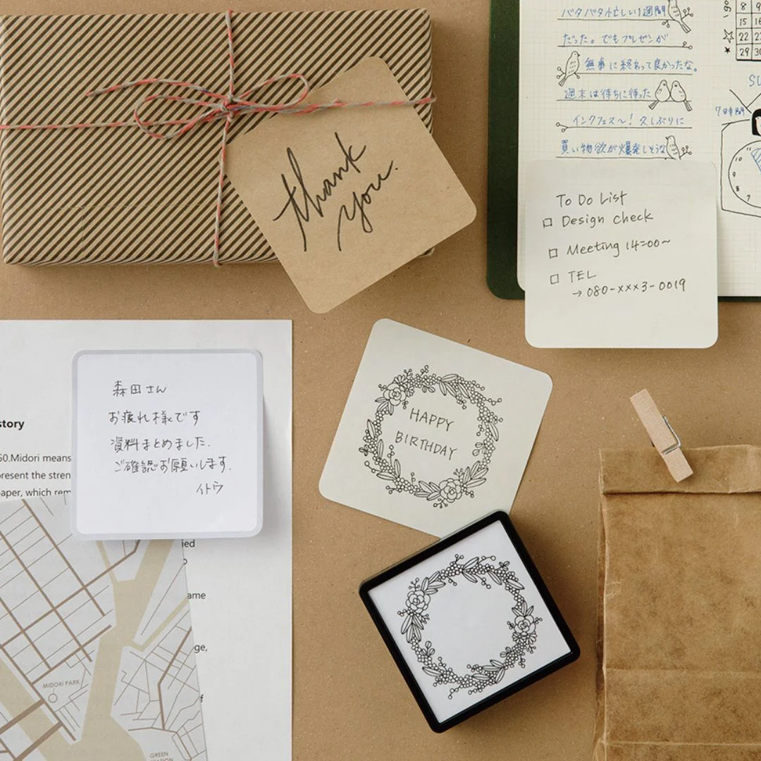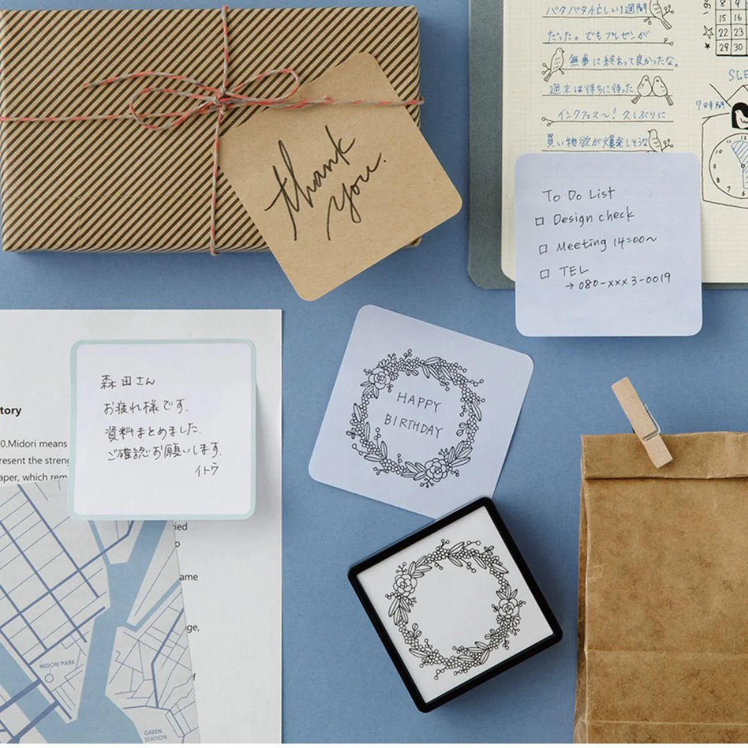 Norėdami lapelius naudoti kaip etiketes ar dovanų korteles, įsigykite antspaudą vainiką.