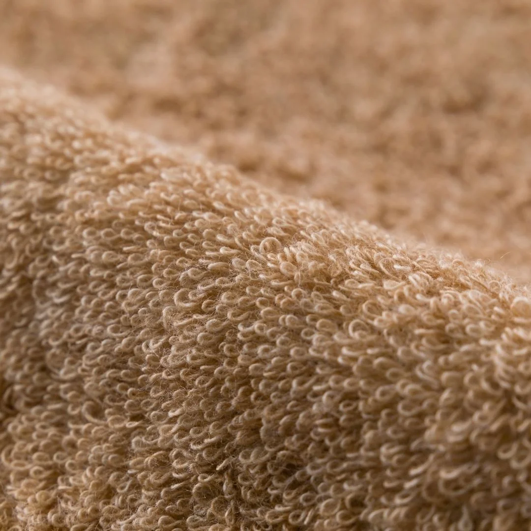 Rankšluosčio gamybai panaudota natūralios spalvos ruda medvilnė, todėl rankšluostis nėra dažytas.