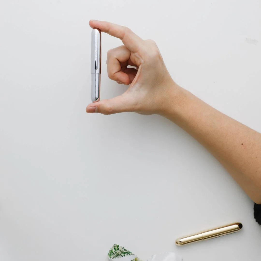 Taip pat galima rinktis sidabrinį kulkos formos prabangų tušinuką.