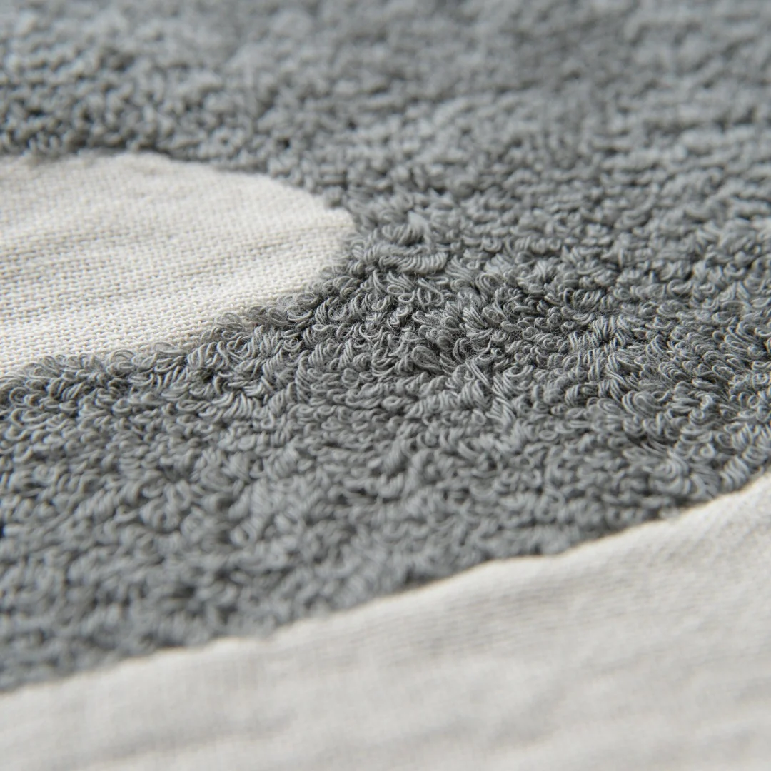 PYYLE raštuotas rankšluostis yra dviejų elegantiškų spalvų – pilkos ir granito pilkos. Šios neutralios spalvos ne tik atrodo prabangiai, bet ir lengvai derinamos su kitais vonios kambario aksesuarais.