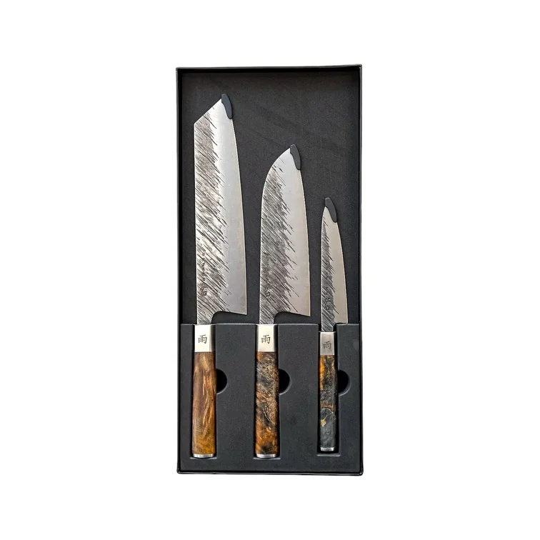 Šiame rinkinyje yra trys pagrindiniai peiliai: Petty, Santoku ir Kiritsuke.