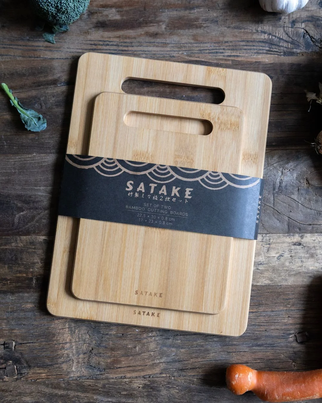 Praktiškas ir stilingas Satake bambukinių pjaustymo lentelių rinkinys, skirtas patogiam kasdieniam maisto ruošimui.