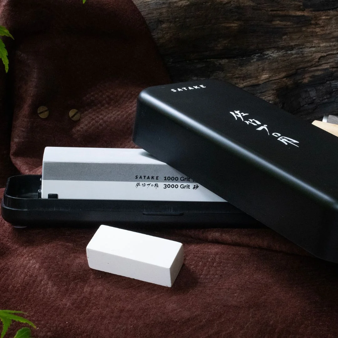 SATAKE japoniškas peilių galąstuvas yra aiškiai pažymėtas grit numeriais, todėl visuomet paprasta atskirti, kurią pusę naudoti. Prie komplekto pridedama praktiška plastikinė laikymo dėžutė, kuri saugo galąstuvą ir tarnauja kaip stabilus pagrindas galandimo metu. Dėžutės dangtelis gali būti naudojamas akmens mirkymui prieš galandimą, nes šie tradiciniai japoniški peilių galąstuvai prieš naudojimą visuomet turi būti pamerkiami į vandenį.