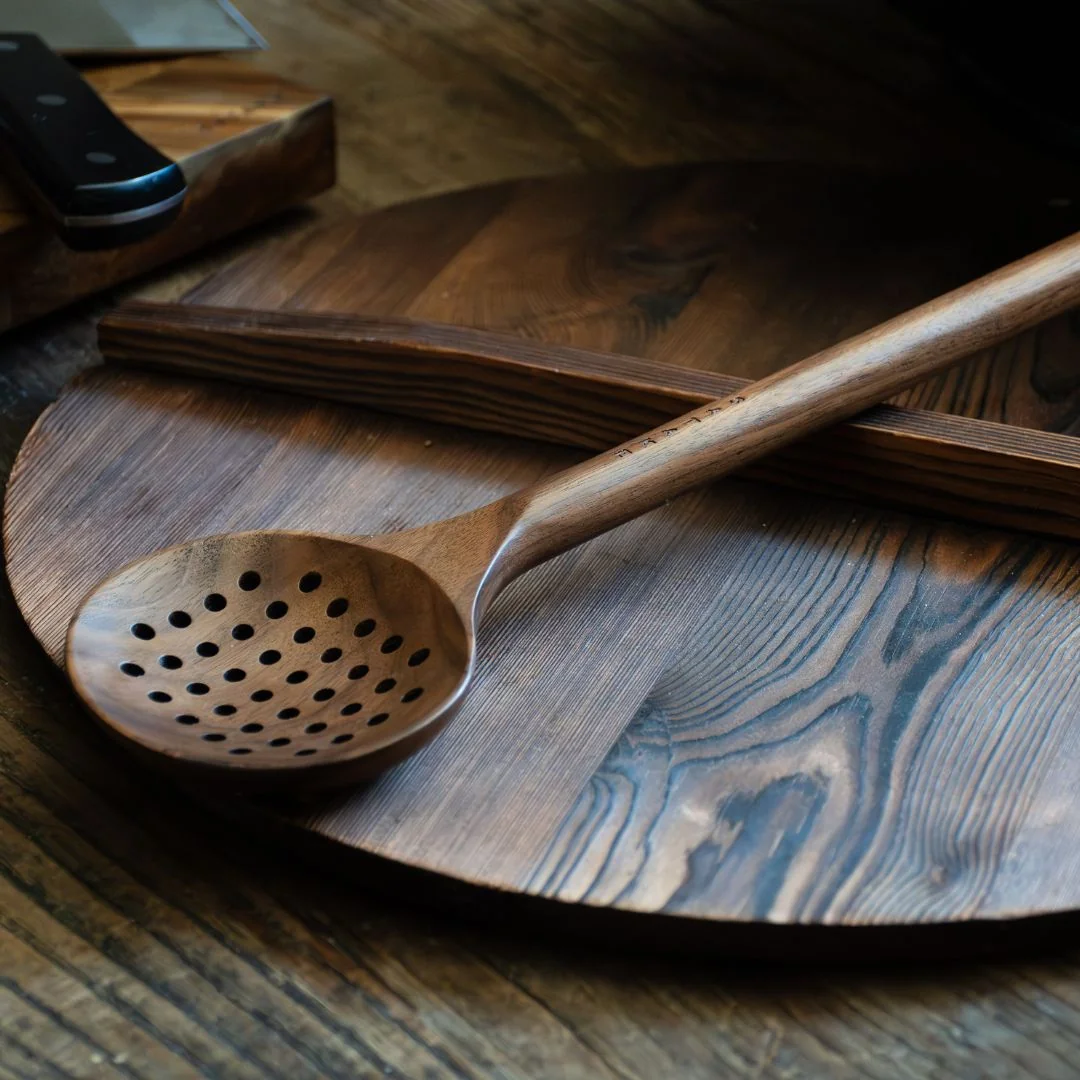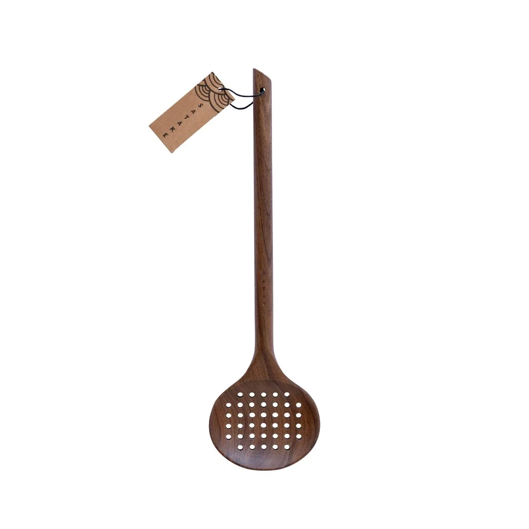Pagamintas iš tamsaus, elegantiško riešutmedžio, šis kiaurasamtis skirtas kruopščiam ir patogiam naudojimui. Jo ilgas, švelniai nupoliruotas kotas leidžia lengvai ir elegantiškai išimti garintas daržoves, makaronus ar kitus delikatesinius produktus iš verdančio vandens, o diskretiškai išgraviruotas „Satake“ logotipas prideda prabangos pojūtį.