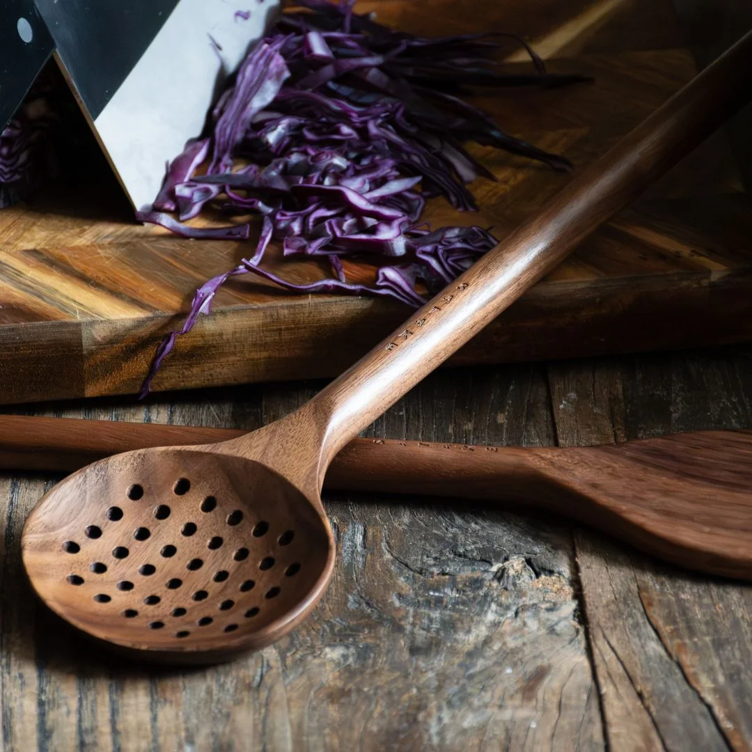 Norint išlaikyti natūralų riešutmedžio grožį ir ilgaamžiškumą, kiaurasamtį būtina tinkamai prižiūrėti. Po naudojimo plaukite jį rankomis šiltu vandeniu, venkite naudoti indų ploviklį, kuris gali pažeisti medžio paviršių. Po plovimo kruopščiai išdžiovinkite rankšluosčiu. Jei pastebite, kad mediena atrodo išsausėjusi ar prarado blizgesį, ją galite lengvai atgaivinti naudodami augalinį aliejų – tiesiog švelniai patepkite paviršių ir nuvalykite perteklių popieriniu rankšluosčiu.
