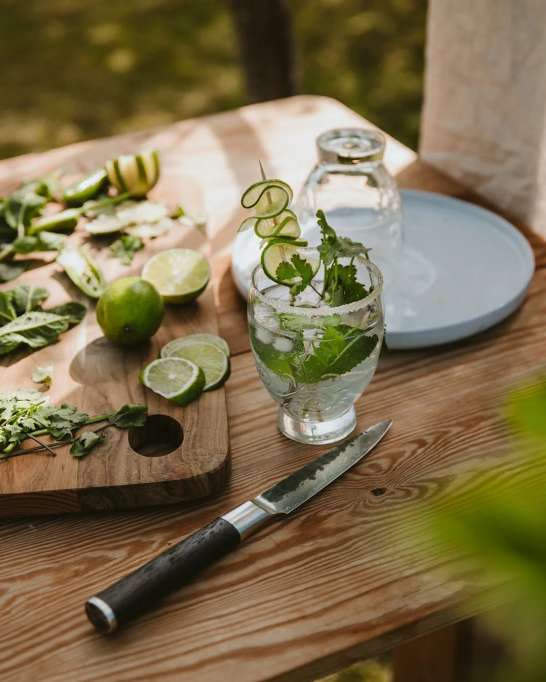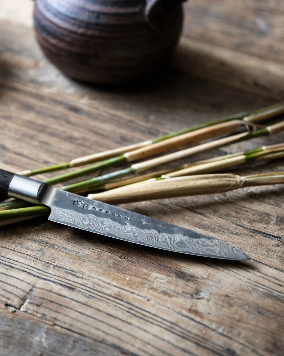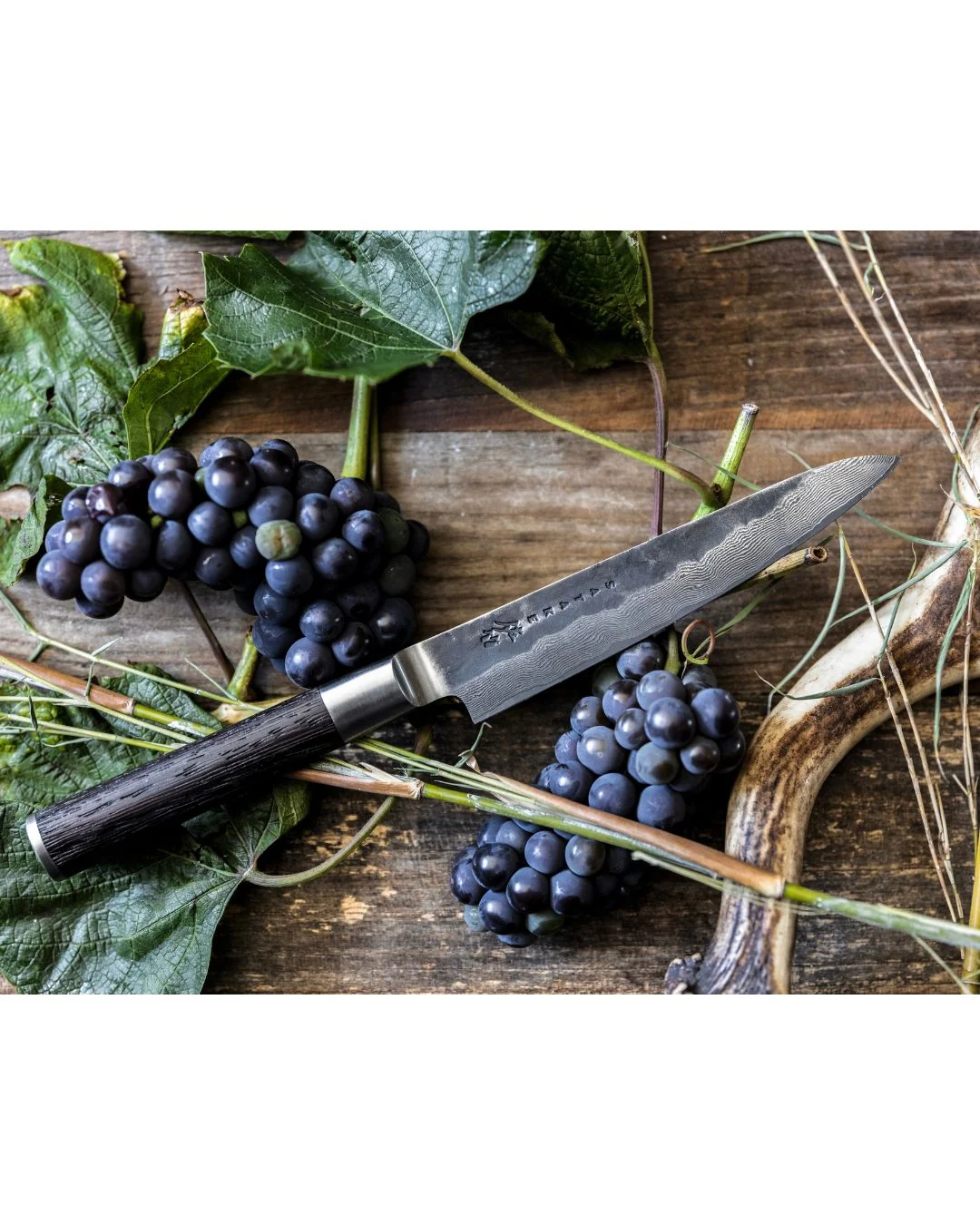 Peilį papildo rankena iš degintos medienos, kuri kartu su 18/8 nerūdijančio plieno bolsteriu ir galine dalimi suteikia puikų balansą, stabilumą ir patogų sukibimą. Peilis sveria apie 120 g, todėl yra lengvas, gerai valdomas ir patogus ilgiau dirbant.
