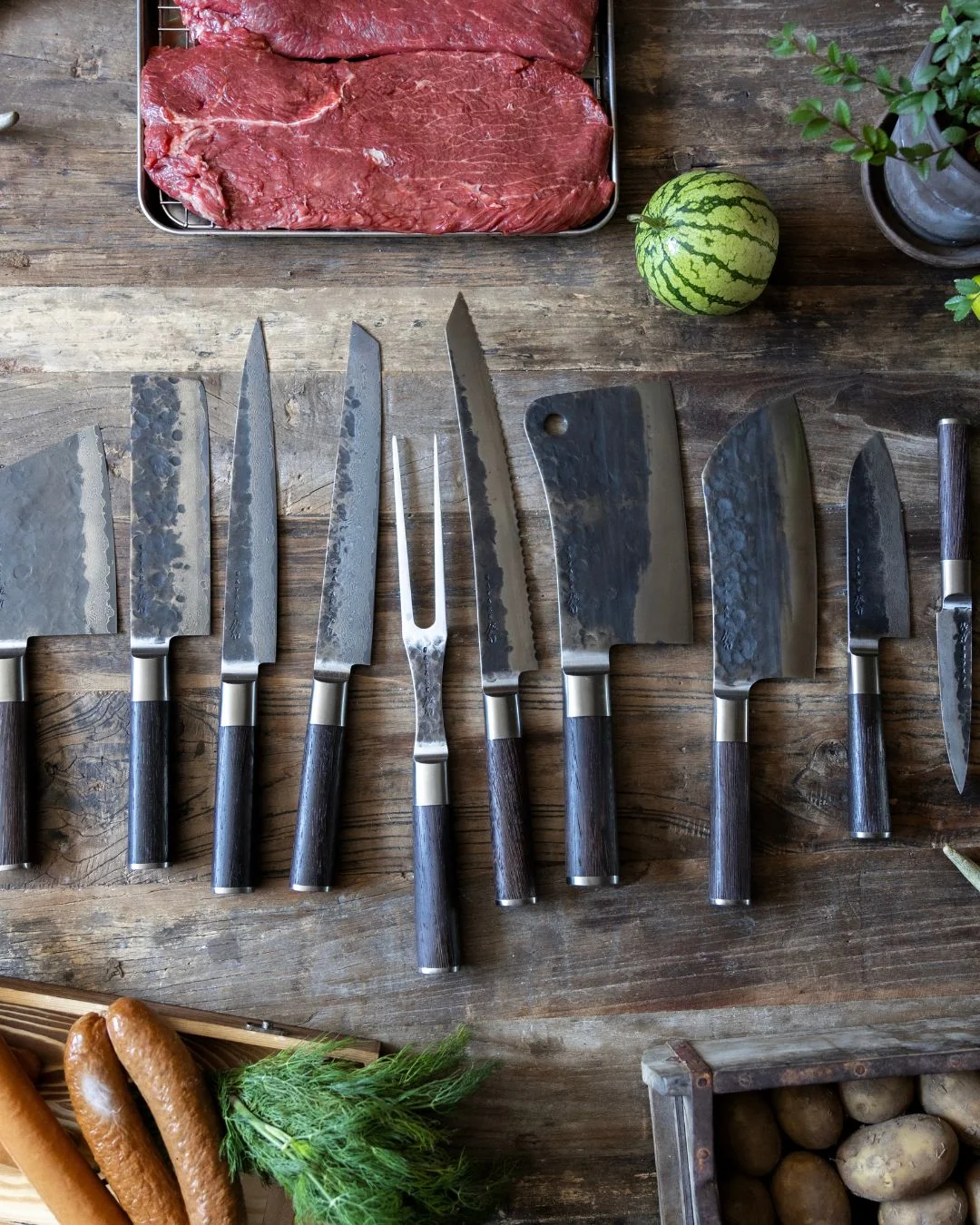 Derinkite kartu su kitais Satake Kuro serijos peiliais – Satake Kuro Chopper 18 cm, Satake Kuro Sakata 14 cm, Satake Kuro Petty 11, Satake Kuro Petty 15.