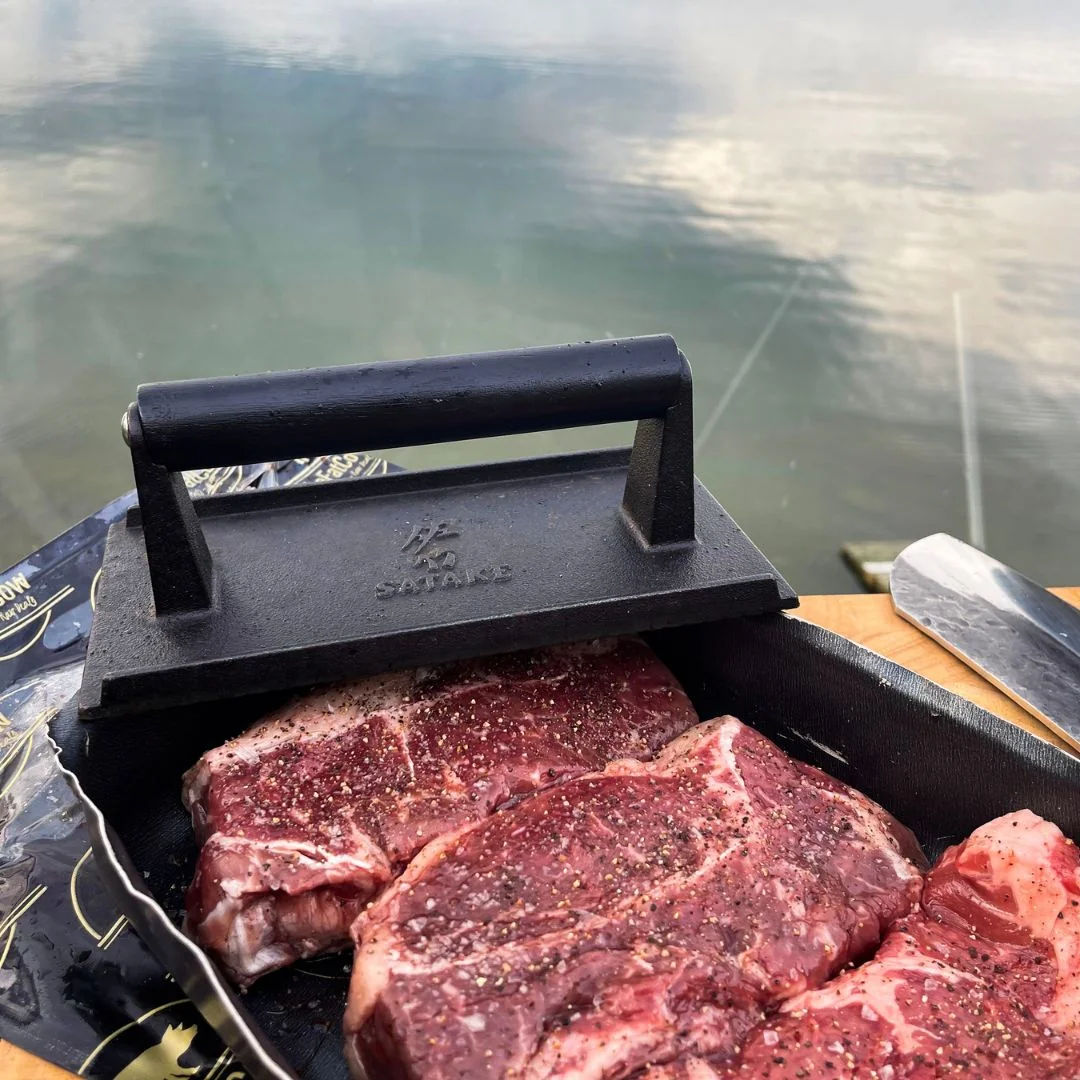 Satake Outdoor presas sveria 1018 gramų – tai tobulas balansas tarp svorio ir naudojimo komforto. Dėl savo dydžio (10,7 x 20,7 cm) jis puikiai tinka ne tik hamburgeriams, bet ir kepsniams, šoninei, paukštienai ar net daržovėms kepti. Galima naudoti su įkaitinta ketaus keptuve ar lauko kepsnine.