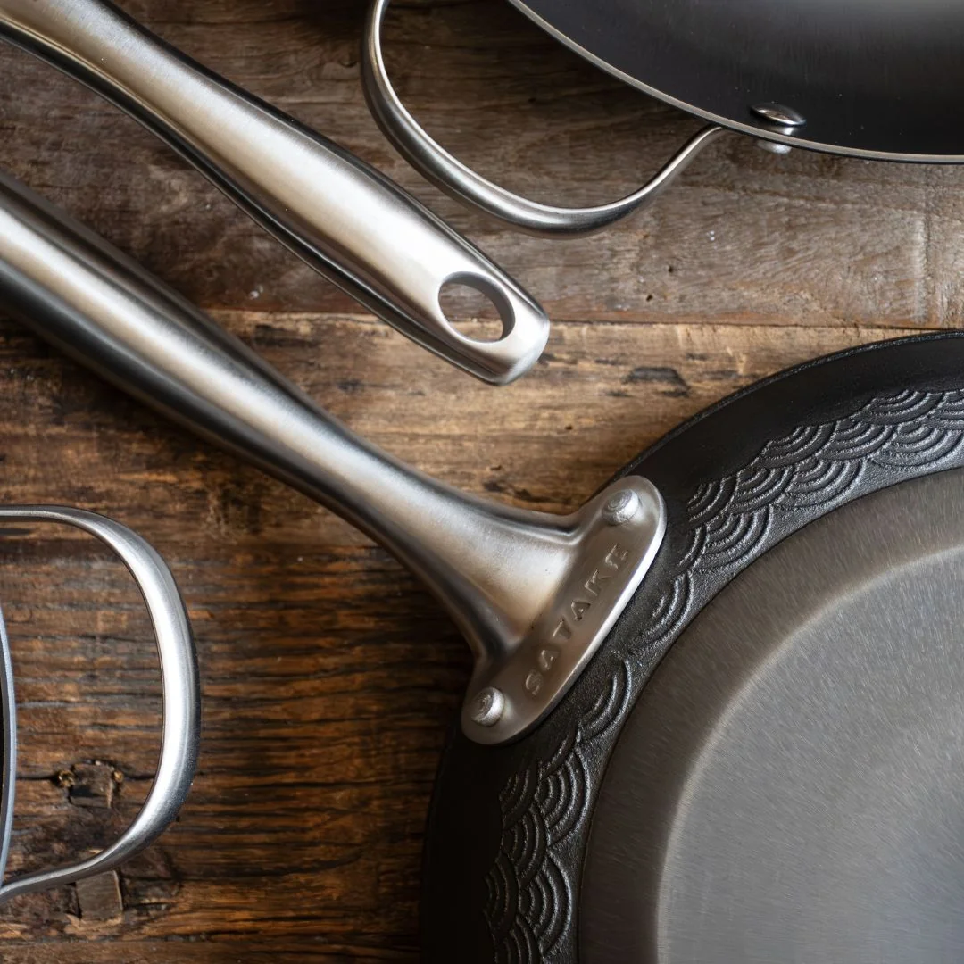 Satake Pure Pan ketaus keptuvė pagaminta iš 100 % gryno ketaus, kuris apdorotas pažangia nitridavimo technologija (plačiau apie nitridavimo technilogiją čia). Šis procesas ne tik sustiprina paviršiaus kietumą ir ilgaamžiškumą, bet ir suteikia blizgų, nerūdijančio plieno primenantį paviršių, kartu išlaikant visas tradicinio ketaus savybes.