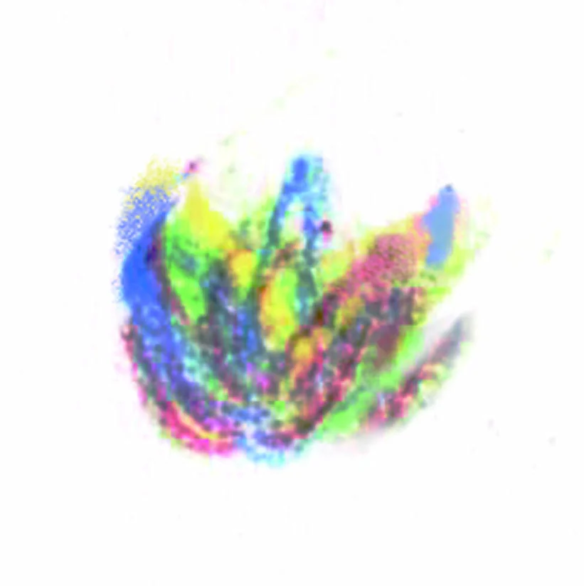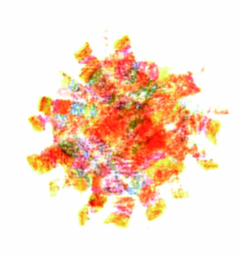 Kreidelė pavadinta „Cosmos“ savyje turi rožinės, geltonos, šviesiai mėlynos ir baltos spalvos,
