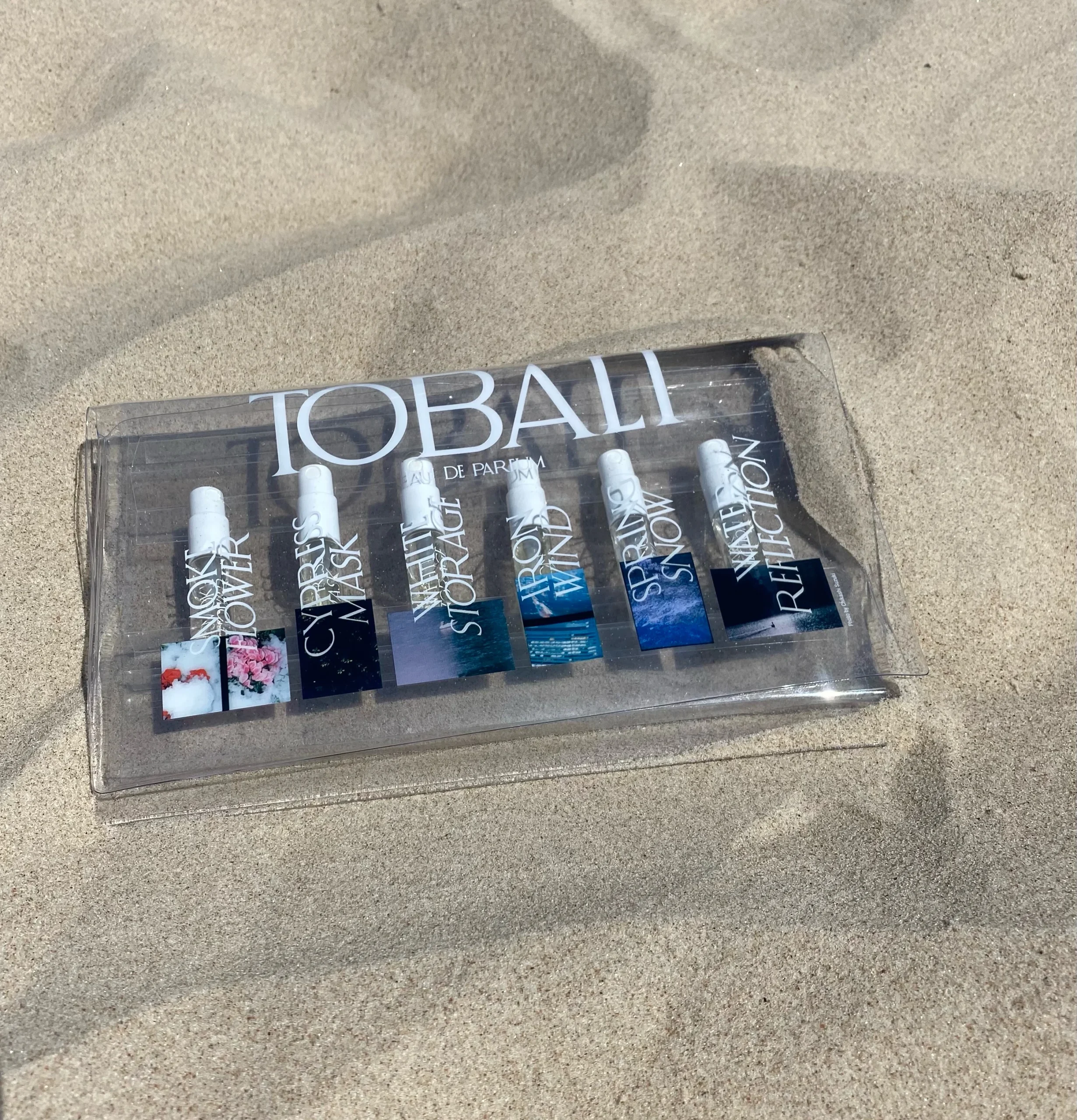 Skirtingi kvapai sužadina emocinę žmogaus atmintį, sukelia asociacijas, susijusias su asmeniniais potyriais, yra kvapai, kurie labiau tinka karštoms vasaros dienoms (gaivesni), ir sodresni kvapai vakarui, kvapai šelmiškam vakarui ir dalykiniam dienos susitikimui. Atsižvelgiant į tai, TOBALI kompanija sukūrė TOBALI kvepalų rinkinį, kurį sudaro 6 skirtingi parfumuoti TOBALI kvapai po 2 ml., supakuoti orginalioje daugkartinio naudojimo kosmetinėje, apipavidalintoje fotografo Chikashi Suzuki.