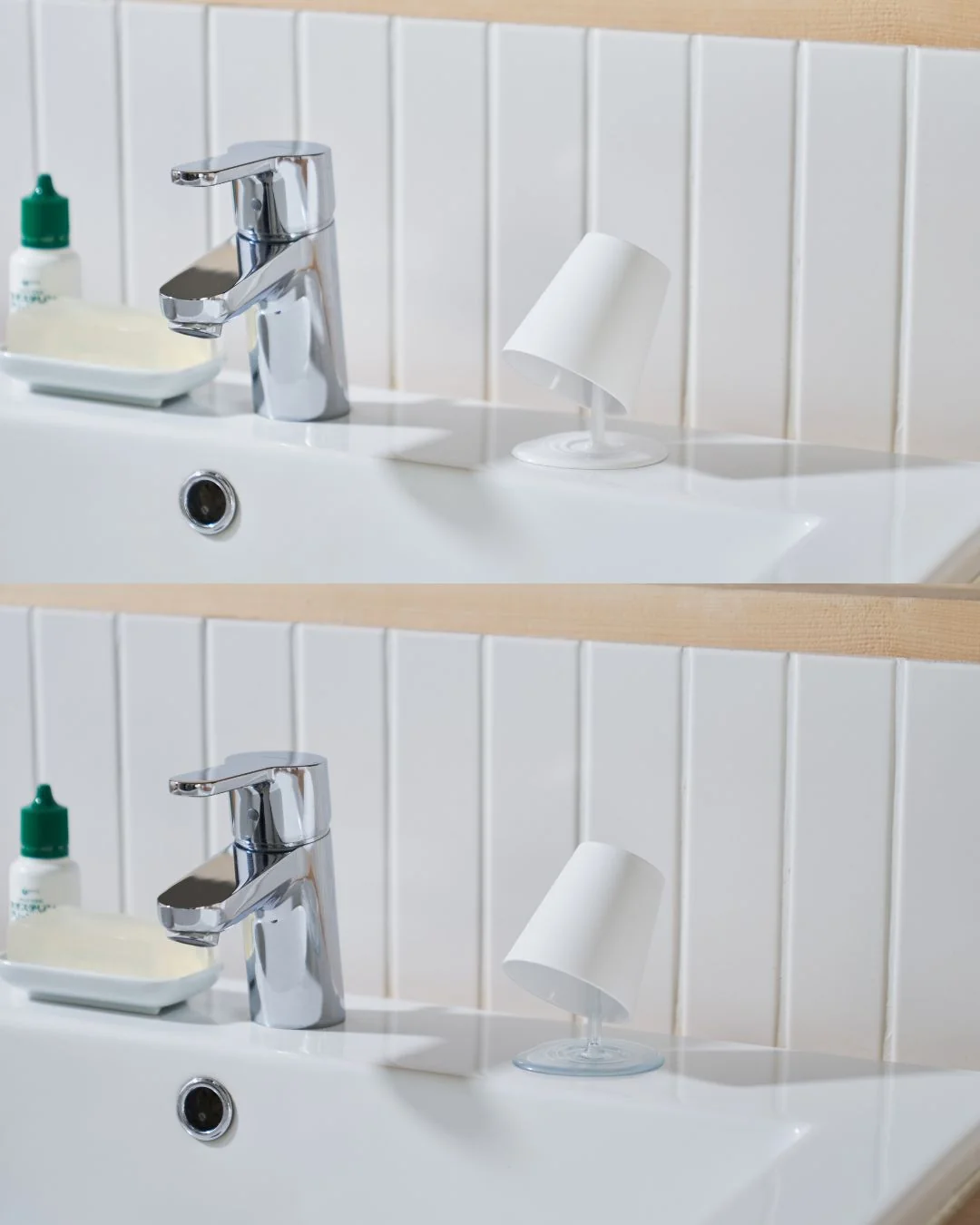 Vonios puodelis isu stovu yra suprojektuoti taip, kad uždėjus puodelį ant stovo atrodytų, jog iš puodelio išsipila baltas pienas arba skaidrus vanduo.